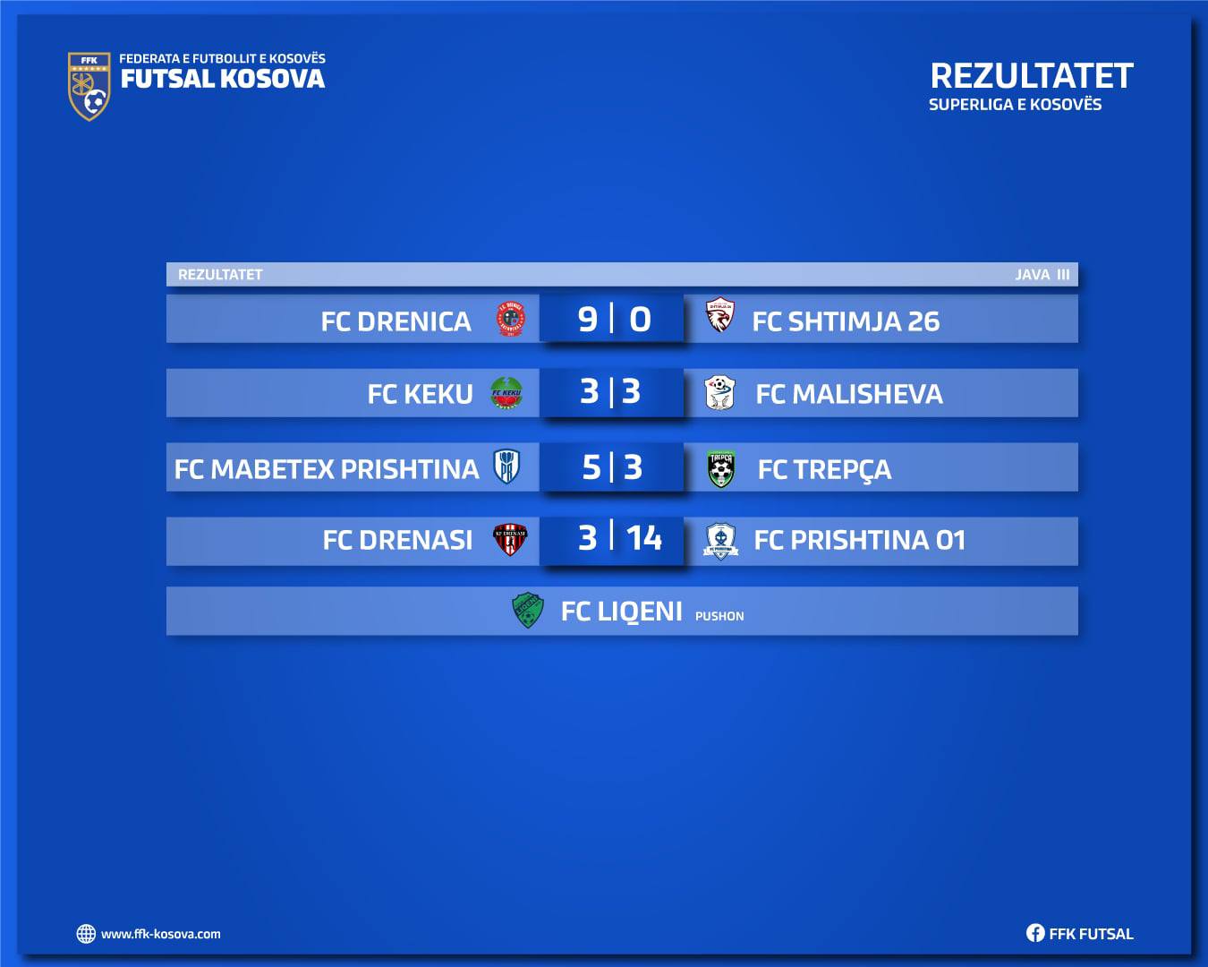Janë mbyllur ndeshjet e javës së tretë në Superligën e Kosovës, ku nuk munguan përballjet me shumë gola.